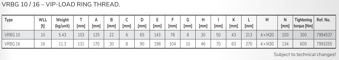 產品介紹 螺栓式吊掛點 VRBG 吊掛點 螺栓式吊掛點 VRBG 吊掛點 VRS 吊掛點 VRM 吊掛點 VLBG-Plus 吊掛點 VWBG-V 吊掛點 VWBG 吊掛點 ACP-TURNADO 吊掛點 PP-S 吊掛點 PP-B 吊掛點 PP-VIP 吊掛點 WBPG 吊掛點 RBG 吊掛點 VRBG 吊掛點 T-FRB 吊掛點 B-FRB 吊掛點 VABH-B 吊掛點 VCGH-G 吊掛點 B-ABA 吊掛點 RS 吊掛點 RM 吊掛點 INOX-STAR 吊掛點 VRBG 吊掛點 廣泛 WLL 範圍 3T ~ 16 T 多點固定而引入分力 支架可旋轉 180° WLL 可在環平面內達到 90° 明確指示所有吊掛方向的最小 WLL back